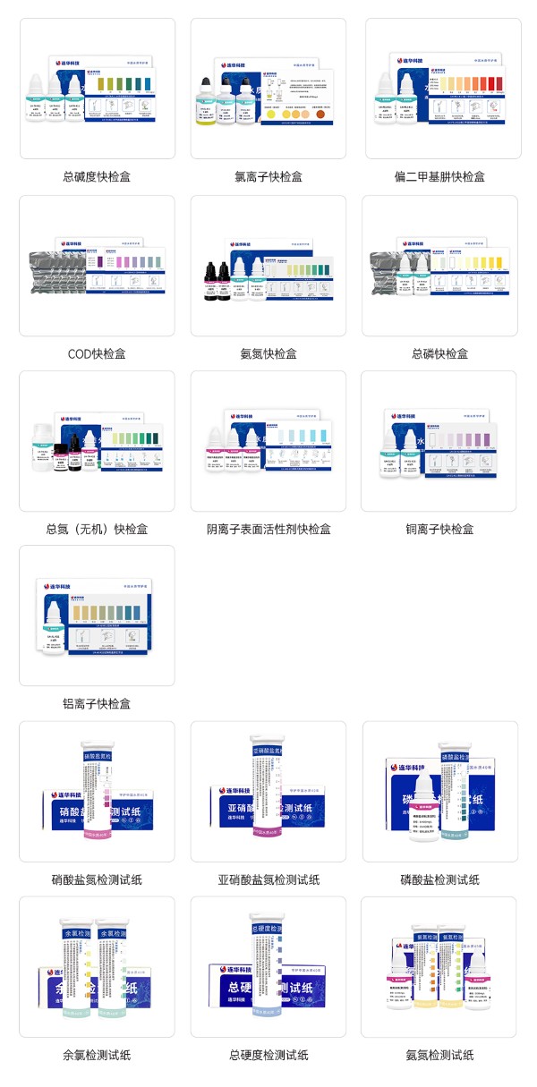精準顯色,廣泛適用——試紙顯色均勻穩定,專業配方確保檢測結果的準確性。除了常規指標外,連華科技快檢試紙還涵蓋了磷酸鹽、余氯、總硬度等特殊項目,廣泛適用于飲用水、工業廢水、農業灌溉水等多種水質檢測場景,滿足多元化需求。
