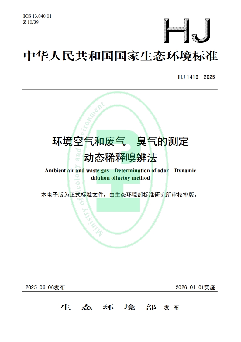 為規范環境空氣和廢氣中臭氣的測定方法,生態環境部近日發布了國家生態環境標準《環境空氣和廢氣 臭氣的測定 動態稀釋嗅辨法(HJ 1416—2025)》。本標準為首次發布,自2026年1月1日起實施。