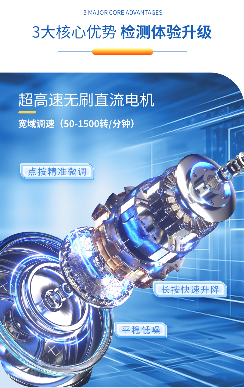 1、強勁動力,無極調(diào)速:50-1500轉(zhuǎn)/分鐘寬幅調(diào)速,點按精準調(diào)節(jié),長按快速增減,操作更高效;